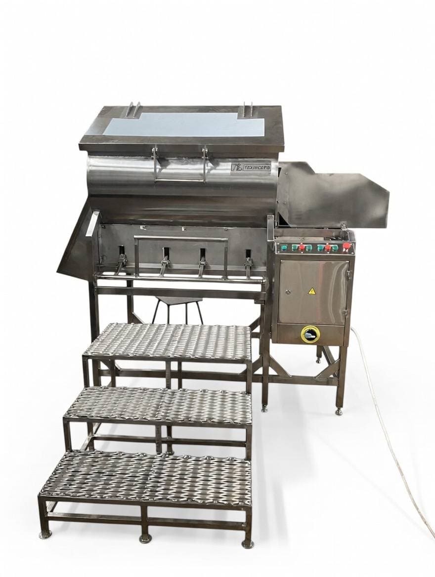 Для підвищення якості змішування обладнання оснащене додатковими ножами, які ефективно розбивають грудки сировини та забезпечують її рівномірне подрібнення.